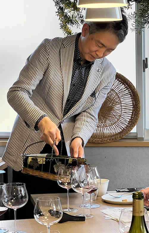 特別講師の楡井健一さんは、「良いワインは良い造りから、そして正しい保管と保管をしたワインこそが本物の良いワイン。ボトルの覚悟と正しい飲み方が感動を生む。」という理念のもと、屋内でも屋内でも低温加湿のワイン倉庫を設置し、厳選したワインを大切にしています。