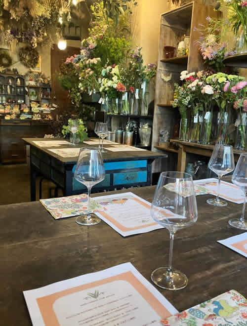 お客様とともに楡井さんのお話を聞きながら、お花にまつわるワインをテイスティングし、楽しいひと時間を過ごしました。